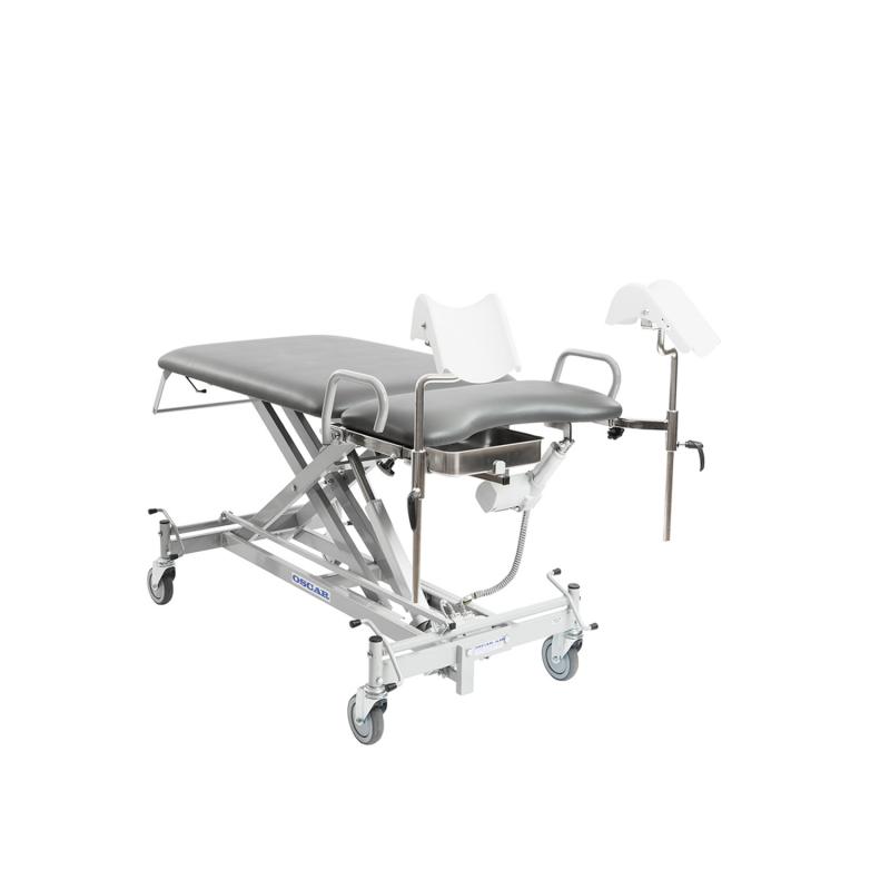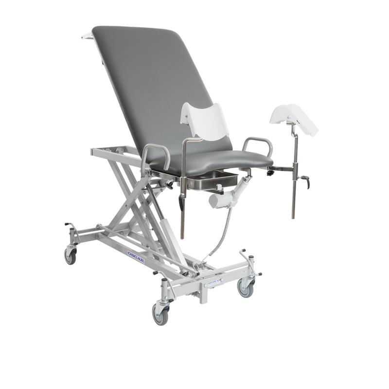 Som tillval finns överdrag till benstöd och en smidig undersökningslampa som monteras direkt på stolen eller med hjälp av en lamphållare.