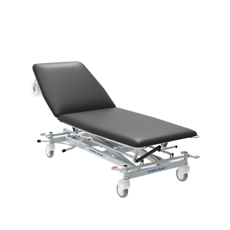 Undersökningsbrits Premium är utrustad med centrallåsta hjul. Med Oscar centrallåsning får du tre olika lägen; alla hjul bromsade, alla hjul frigjorda eller 2 st frigjorda och 2 st riktningsspärrade. Centrallåsta hjul är att föredra om britsen ska flyttas mycket och underlättar också vid byte av pappersrulle, om bristen står mot en vägg.